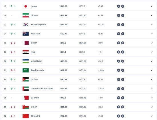 FIFA更新国度队最新一期排行,国足寰宇第92亚洲第13,创8年半排行新低。